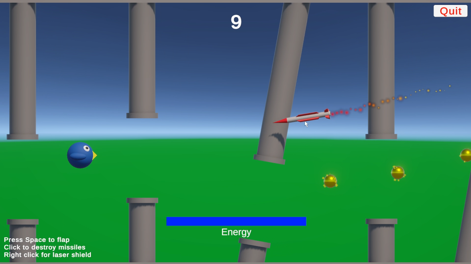 Click on yellow energy balls to restore energy needed to flap