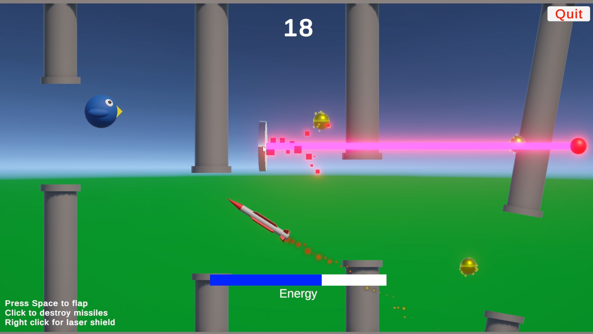 Right click to block lasers with shield (uses up energy)